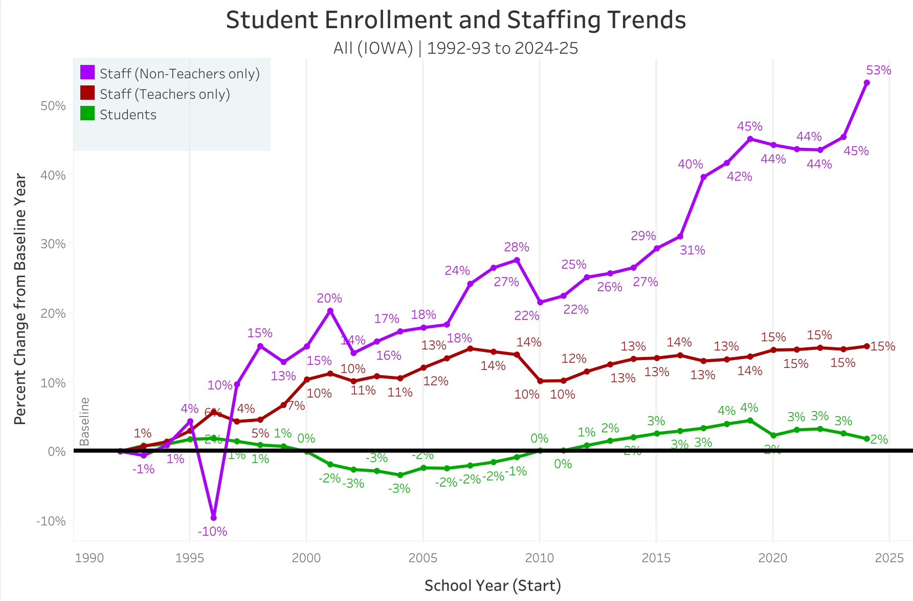 Iowa School Staffing Trends: Fewer Students, More Non-Teaching Staff